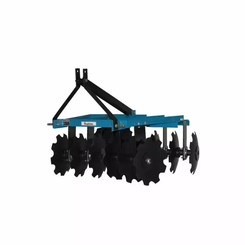KING KUTTERS PROFESSIONAL ANGLE FRAME DISCS are constructed with heavy rigid angle iron. It connects easily to any three-point hitch with category one specifications. The disc gang axles are made of 1″ square steel rods mounted on double thrust ring gray-iron bearings. All disc harrows have angle adjustments of 10 or 15 degrees. The 5 1/2′ discs have two adjustments and the 6 1/2′ has three.