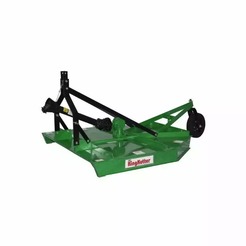 King Kutter’s Rotary Kutters are a quality constructed, durable Kutter that’s built to last. Constructed with rugged I-beam side rails, and a single sheet top deck that is fully reinforced with cross and spider bracing. Standard features include cast iron gearbox, stump jumper, laminated tire with adjustable tailwheel and shielded PTO with a shear pin (slip clutch optional on most models). These Kutters are available in 40″ , 4′, 5′, & 6′ widths and offer gearbox choices of 40 & 60 Hp. Optional Front & Rear Chain Guards are Available