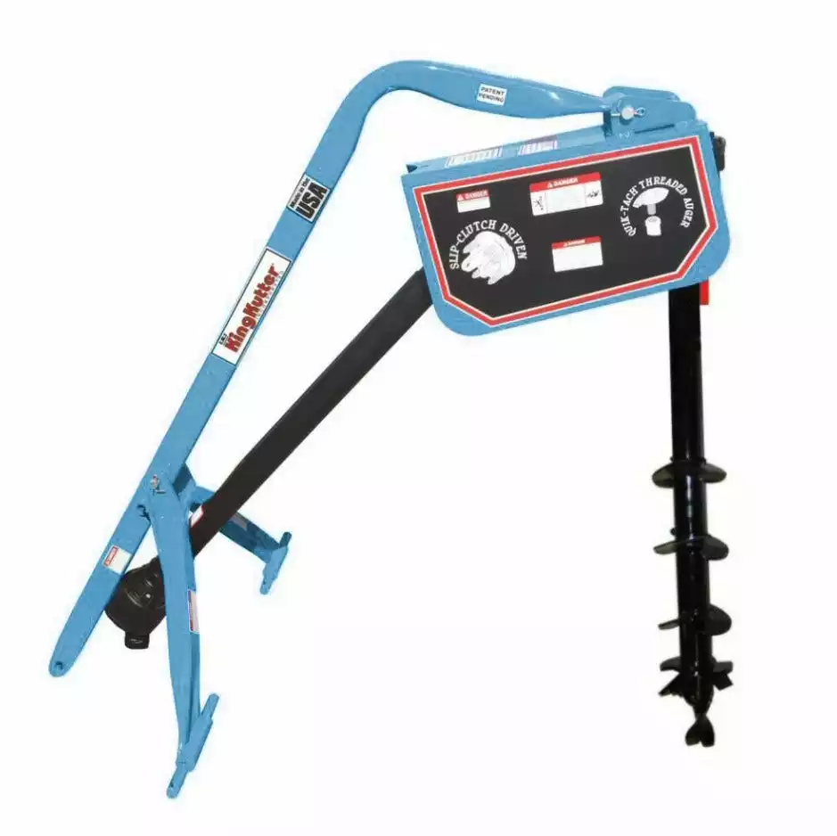 The New “Patent Pending” King Kutter Post Hole Diggers are the latest in post hole digger innovation from King Kutter Inc. This post hole digger features a 3-point Cat. I hitch, a unique Quik-Tach threaded auger, a slip clutch driven gearbox and 6″, 9″ & 12″ augers with “Butterfly Flighting”.