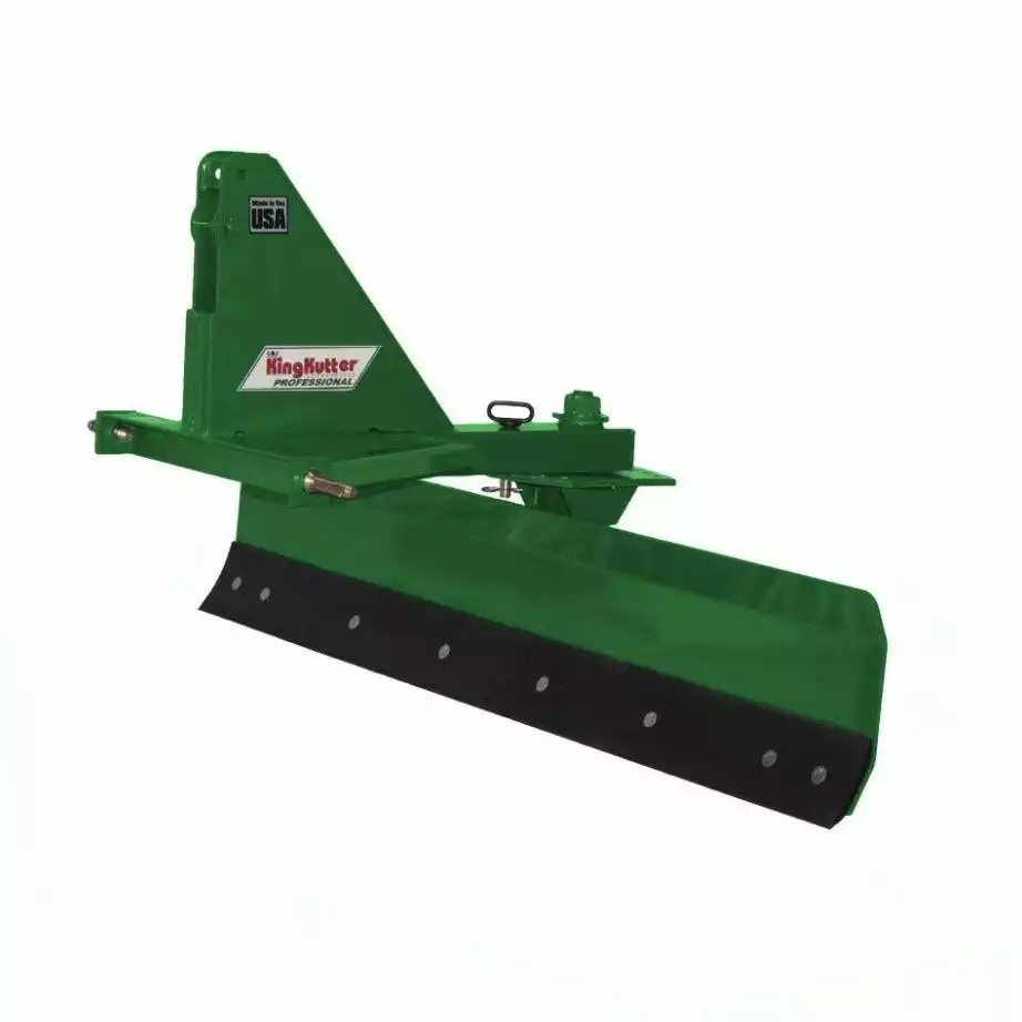 KING KUTTERS PROFESSIONAL PRB SERIES REAR BLADES are designed for dependable performance on tough jobs. They are great for dirt work, road maintenance, and ditching, landscaping, snow removal, cleaning livestock pens plus much more. The PRB Series features a specially molded moldboard, with reinforced back bracing for extra strength and performance. All moldboards are equipped with a reversible, high carbon, heat-treated steel edge. The PRB has 7 forward and 5 reverse settings, plus they will tilt left or right and off set.