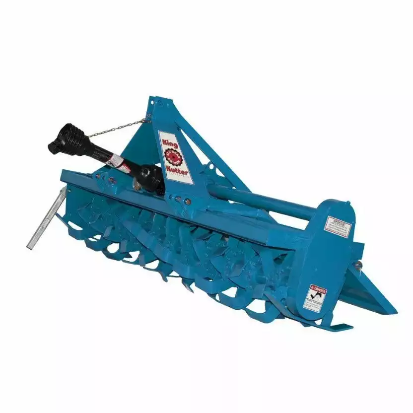 King Kutter’s 7′ GEAR DRIVEN ROTARY TILLER (TG-84);is designed to perform with its heavy duty gear drive and square tube frame. With 6 tines per flange, you get maximum soil mix for preparing planting beds, gardens, incorporating fertilizer, landscaping, or other jobs. This Category 1 tiller includes a PTO shaft with heavy duty slip clutch. Available in 4, 5, and 6 ft. models as well. The 4 ft. model is offset to eliminate tire tracks.