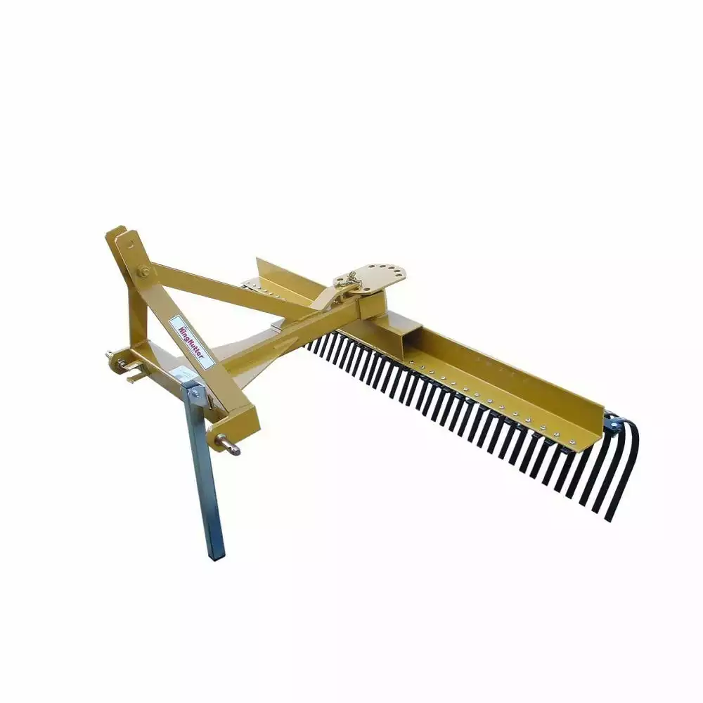 KING KUTTER’S YARD RAKES are engineered for versatility, for the professional landscaper, farmer, homeowner or contractor. They are great for gravel road grading, lot maintenance, seed bed preparation, pasture renovation, the removal of rocks, roots, or trash, plus much more. These landscape rakes are equipped with 5 forward and 5 reverse settings for maximum flexibility and maneuverability. The unique design features an adjustable stabilizer bar that allows the heat treated spring steel tines to be more or less rigid, and a reinforced, 3-point wrap around frame for added strength