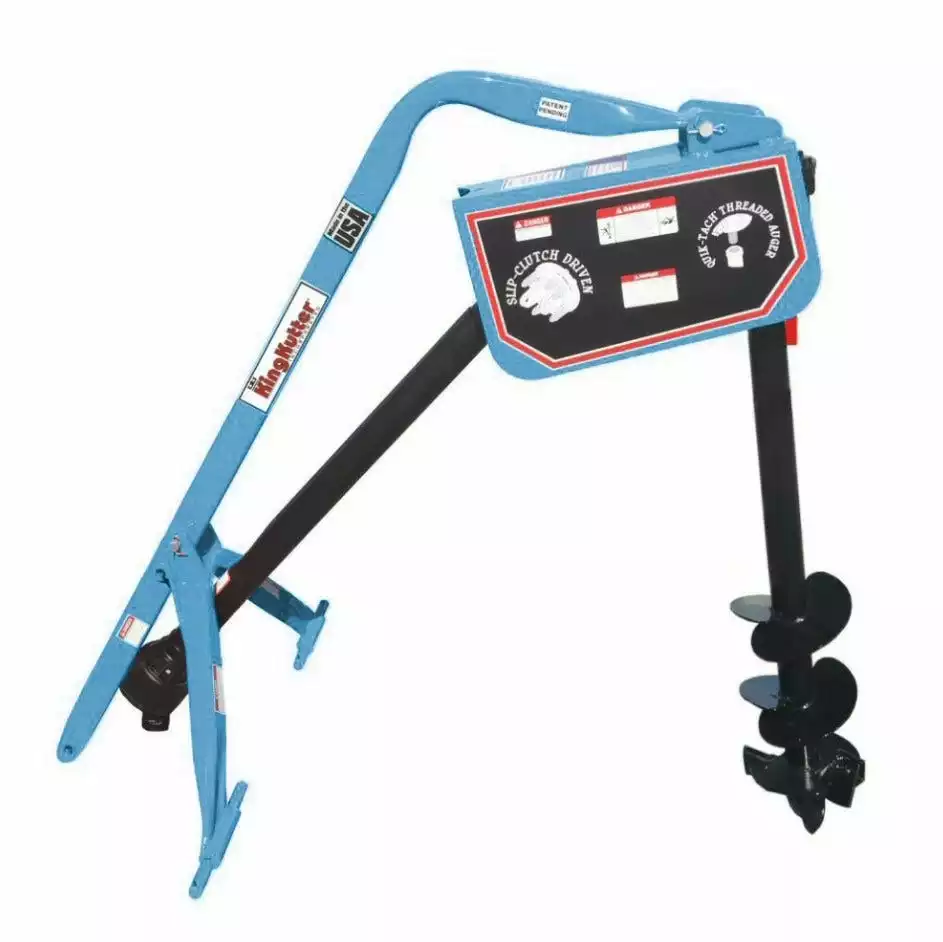 The New “Patent Pending” King Kutter Post Hole Diggers are the latest in post hole digger innovation from King Kutter Inc. This post hole digger features a 3-point Cat. I hitch, a unique Quik-Tach threaded auger, a slip clutch driven gearbox and 6″, 9″ & 12″ augers with “Butterfly Flighting”.